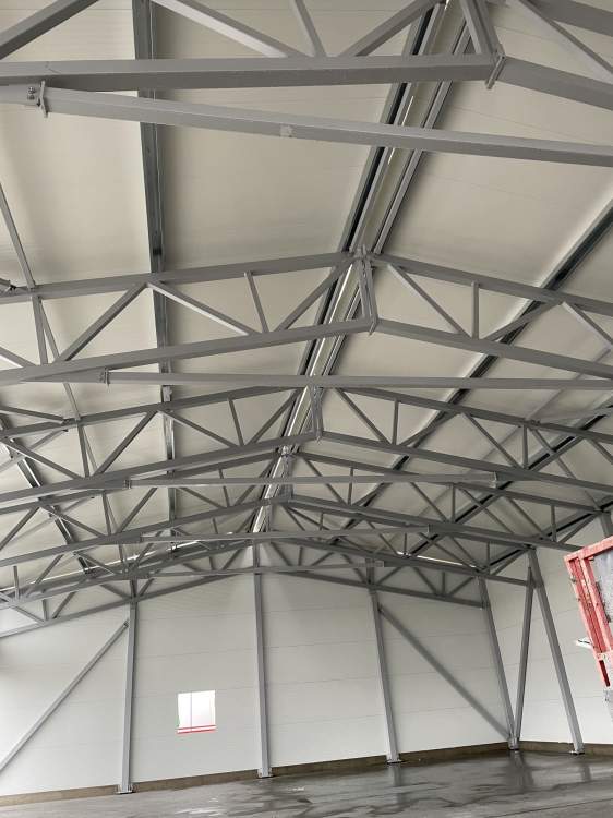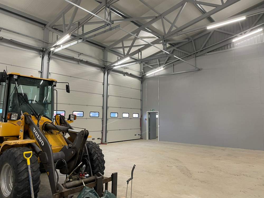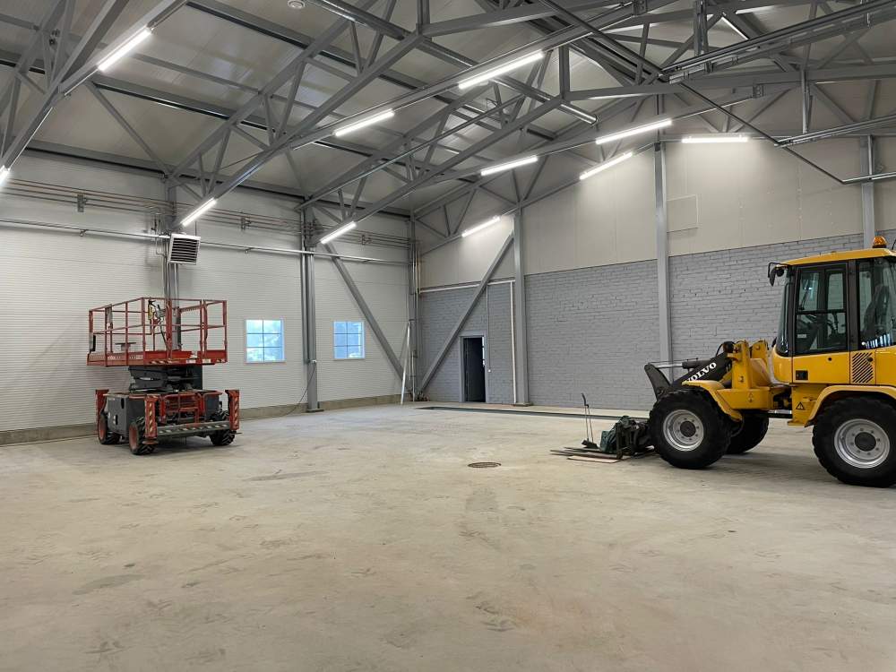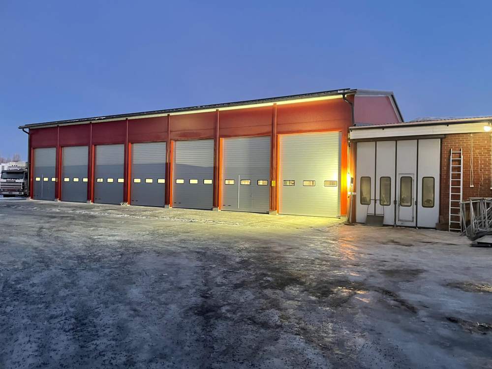Återuppbyggnad av nedbrunnen lagerhall bestående av en garagehall och tvätthall. Hallen byggdes upp med stålstomme och sandwich element på den befintliga betongplattan. Hallbyggnaden byggdes ihop med den befintliga byggnaden som klarat sig i branden.